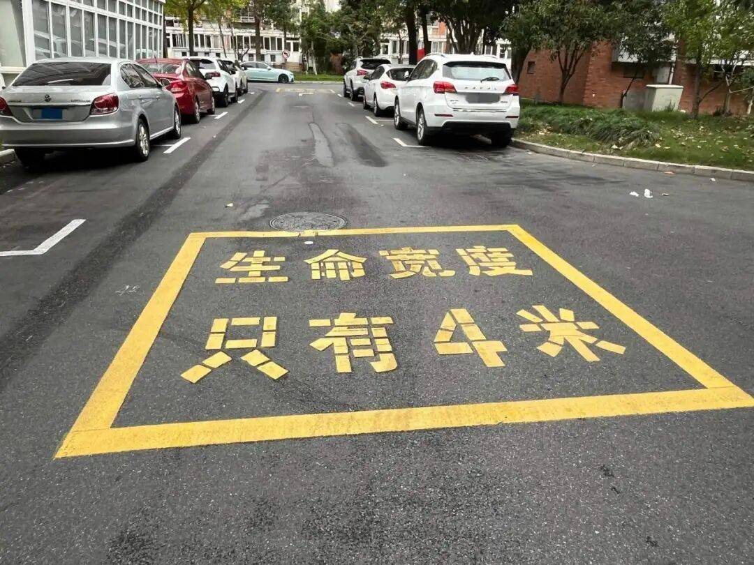 “最主要是将小区的环形消防车道进行拓宽,整个小区将近900米左右的环形消防车道拓宽了1米至1.5米,确保在双边停车的情况下,小区中间的道路宽度还是不小于4米,消防车可以正常通行,在地面等处施划标识标线,起到提醒警示的作用。”